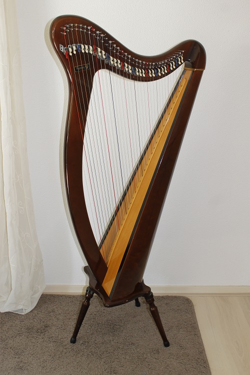 Deze harp heeft 34 snaren en haakjes en heeft een mooie klank.